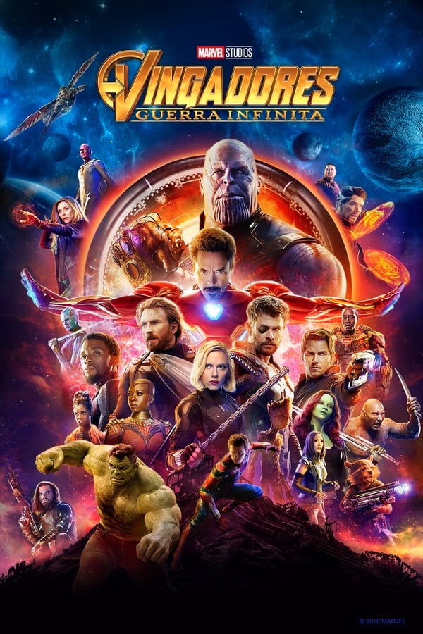 Atores: Robert Downey Jr. , Chris Hemsworth , Mark Ruffalo , Chris Evans , Scarlett Johansson , Benedict Cumberbatch , Tom Holland , Chadwick Boseman , Don Cheadle , Zoe Saldaña , Karen Gillan , Elizabeth Olsen , Paul Bettany , Anthony Mackie , Sebastian Stan , Tom Hiddleston , Idris Elba , Danai Gurira , Peter Dinklage , Benedict Wong , Pom Klementieff , Dave Bautista , Vin Diesel , Bradley Cooper , Gwyneth Paltrow , Benicio del Toro , Josh Brolin , Chris Pratt , Sean Gunn , William Hurt , Letitia Wright , Terry Notary , Tom Vaughan-Lawlor , Carrie Coon , Michael James Shaw , Stan Lee , Winston Duke , Florence Kasumba , Kerry Condon , Monique Ganderton , Jacob Batalon , Tiffany Espensen , Isabella Amara , Ethan Dizon , Ariana Greenblatt , Ameenah Kaplan , Ross Marquand , Michael Anthony Rogers , Stephen McFeely , Aaron Lazar , Robert Pralgo , Olaniyan Thurmon , Blair Jasin , Matthew Zuk , Laura Miller , Kenneth Branagh , Samuel L. Jackson , Cobie Smulders , Harrison Osterfield , Gary Peebles , Marija Abney , Zola Williams , Marie Mouroum , James Siderits , Precious Jenkins