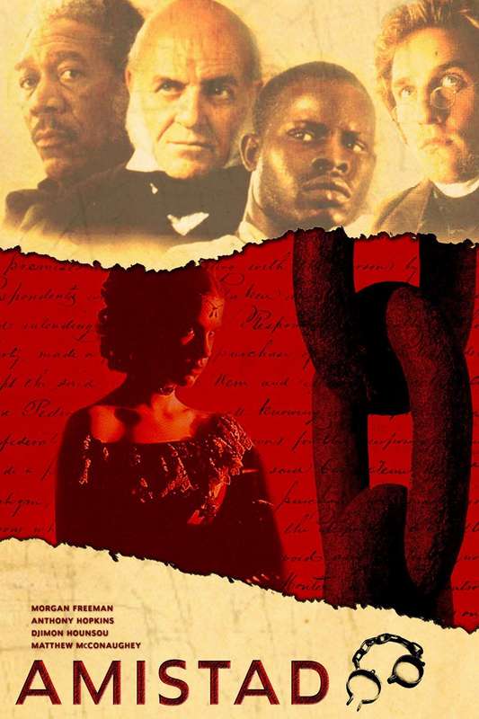 Costa de Cuba, 1839. Dezenas de escravos negros se libertam das correntes e assumem o comando do navio negreiro La Amistad. Eles sonham retornar para a África, mas desconhecem navegação e se vêem obrigados a confiar em dois tripulantes sobreviventes, que os enganam e fazem com que, após dois meses, sejam capturados por um navio americano, quando desordenadamente navegaram até a costa de Connecticut. Os africanos são inicialmente julgados pelo assassinato da tripulação, mas o caso toma vulto e o presidente americano Martin Van Buren (Nigel Hawthorn), que sonha ser reeleito, tenta a condenação dos escravos, pois agradaria aos estados do sul e também fortaleceria os laços com a Espanha, pois a jovem Rainha Isabella II (Anna Paquin) alega que tanto os escravos quanto o navio são seus e devem ser devolvidos. Mas os abolicionistas vencem, e no entanto o governo apela e a causa chega a Suprema Corte Americana. Este quadro faz o ex-presidente John Quincy Adams (Anthony Hopkins), um abolicionista não-assumido, sair da sua aposentadoria voluntária, para defender os africanos.